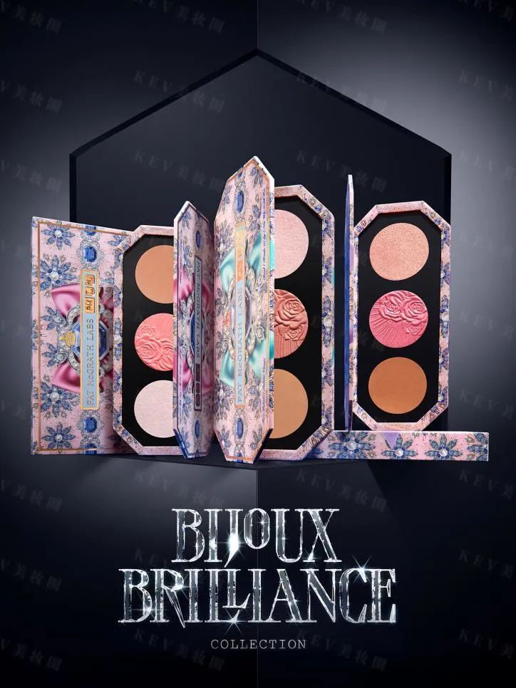 随后,节日限定颊彩盘也惊喜上市,一盘聚集修容、高光与腮红3大功能,更有3款色号可供选择: