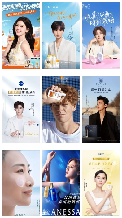 季节性单品的合作趋势尤为明显,以防晒产品为例,Mistine蜜丝婷官宣防晒代言人赵露思、高姿官宣防晒霜全球品牌代言人成毅、柳丝木官宣品牌全球代言人(防晒&卸妆品类)鹿晗、妮维雅官宣630及防晒品牌大使王星越、理肤泉官宣防晒全球大使扬尼克·辛纳Jannik Sinner、伊菲丹官宣防晒代言人吴磊、花西子官宣防晒品类挚友何雯娜、ANESSA安热沙官宣品牌大使宋雨琦、DHC官宣防晒小金帽代言人陈意涵……