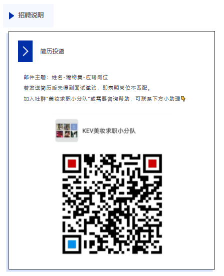 *公司、岗位职责和投递方式详情见正文,全部信息由企业主提供,KEV美妆圈汇集整理,简历投递请备注信息渠道来自KEV美妆圈,感谢。