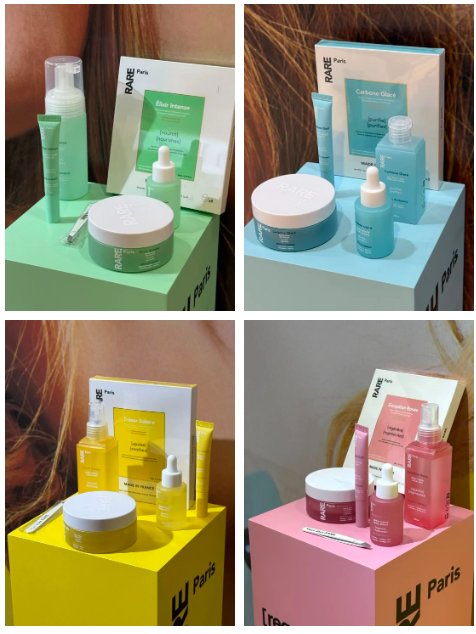 另一个来自法国的品牌RARE-Paris则展现了场景构建的另一种可能。品牌以”RARE”四个字母定义四大肌肤需求,并以此为基础构建了一套以面膜为核心的护肤仪式。通过将面膜置于护肤流程的首位,并围绕其设计后续配套产品,品牌不仅强化了面膜的核心地位,更将单次护肤提升为一套完整的肌肤护理体验。这种以特定产品为轴心的场景设计,让每个使用环节都充满了仪式感与专业性。