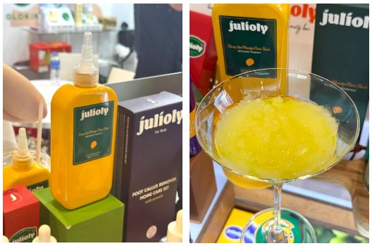 韩国品牌Julioly,热门产品芒果发丝修护精华在遇水后变为啫喱状的特性,也在简单的护发步骤中植入了乐趣。
