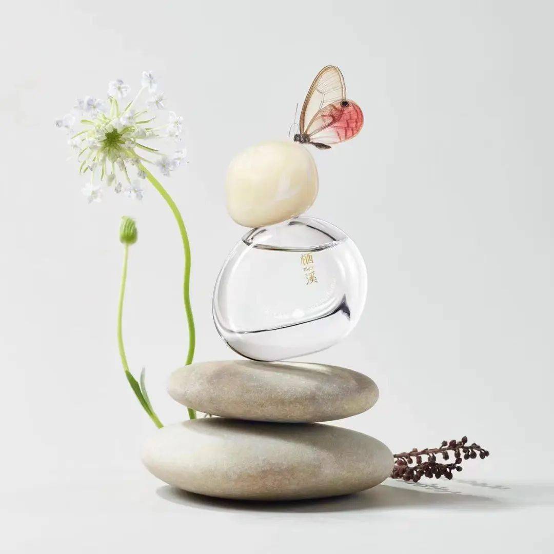 首款香型“佩兰当归”以东方“佩兰引蝶”为灵感打造,清凉湿润的草本香气交织着洋甘菊与铃兰、茉莉的芳香,最后化为宁静沉稳的木质香调,仿若从故乡田野步入宁静沉稳的森林之中。