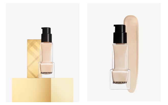 BURBERRY于近日推出首款长效滋润妆前乳——千金妆前乳。外观选用大气奢华金色搭配品牌经典网格纹设计,成分特别添加红花油提取物亚油酸与亚麻酸,可有效促进保湿,锁住水分。