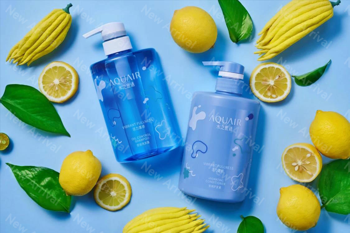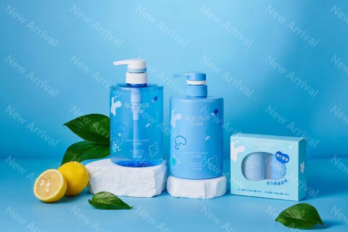 菲婷丝集团旗下高端洗护品牌水之密语,针对头皮水油失衡等问题,推出全新活力蓬感系列。系列外观将清新活力的蓝色作为主打色调,一组两件的半圆瓶身设计,寓意着守护秀发水油平衡主打理念。